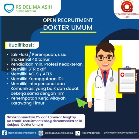 Dibutuhkan Segera !! Saat ini Rumah Sakit Delima Asih Sisma Medika di wilayah Karawang Timur…
