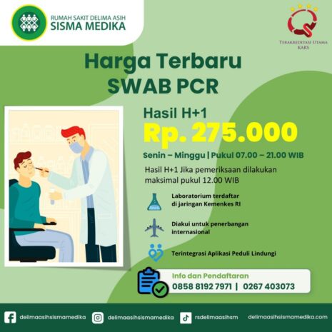 Harga terbaru Swab PCR Rp 275.000 hasil H+1 Informasi dan pendaftaran silahkan hubungi ke telp…