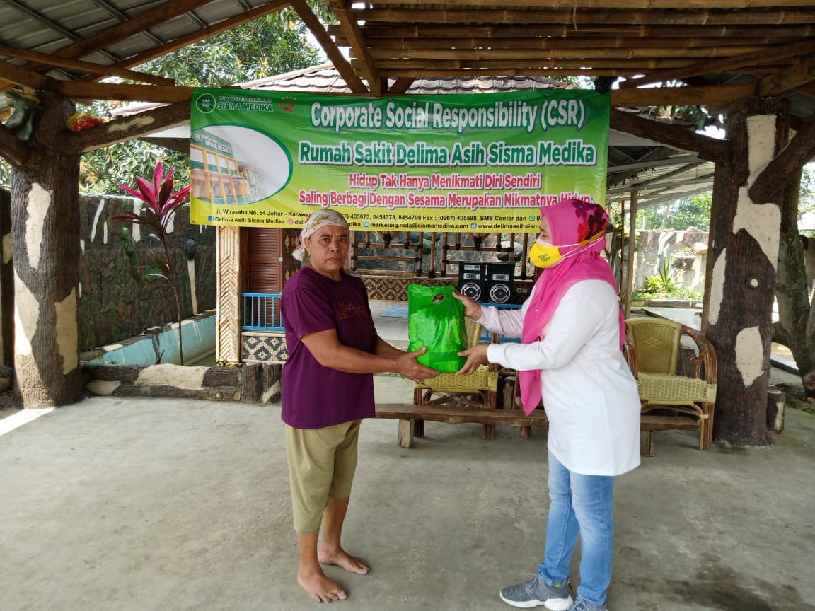 Selasa (16/3/21) Kegiatan CSR RS Delima Asih Sisma Medika, pembagian bantuan sembako untuk Korban Banjir di Desa Parung Sari, Kec. Telukjambe Barat, Karawang.