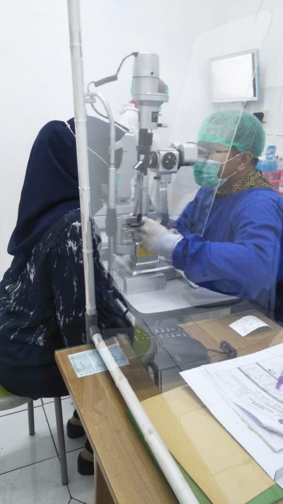 Kegiatan pemeriksaan di Poli Mata dengan tetap mengikuti protokol kesehatan Covid-19. Layanan Spesialis Mata telah dibuka di RS Delima Asih Sisma Medika dengan dr Ariawan Priguna, Sp.M.