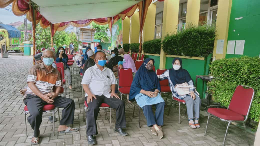 Dengan tetap menerapkan protokol kesehatan yakni diawali dengan mencuci tangan sebelum ke area vaksinasi, menjaga jarak dengan duduk di kursi yang telah disediakan, dan tetap memakai masker selama kegiatan berlangsung.